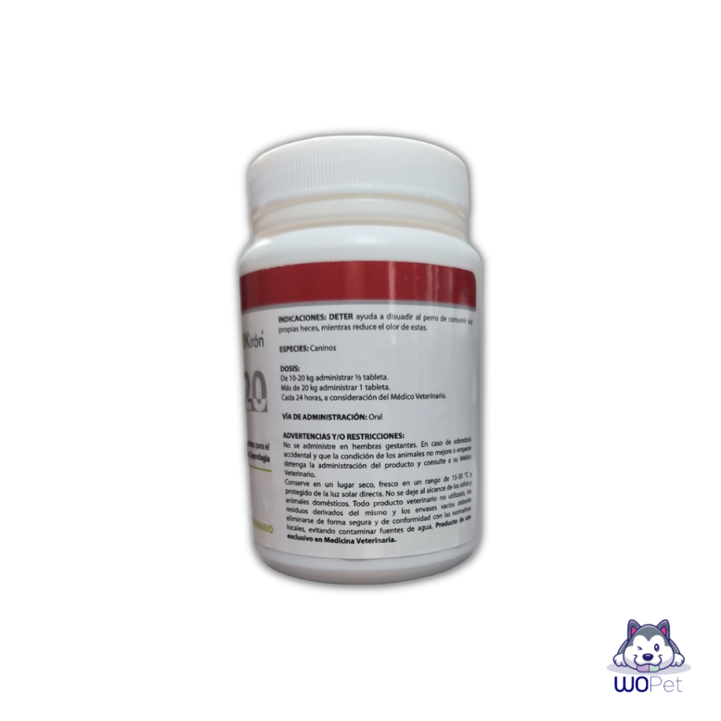 Gracias a la sinergia de los ingredientes activos en DETER 20, en forma de tabletas masticables, se logra disuadir al perro adulto y/o cachorro, del hábito indeseable de la coprofagia, ya sea causado por motivos nutricionales, patológicos o comportamentales, mediante la modificación de las características organolépticas de las excretas.