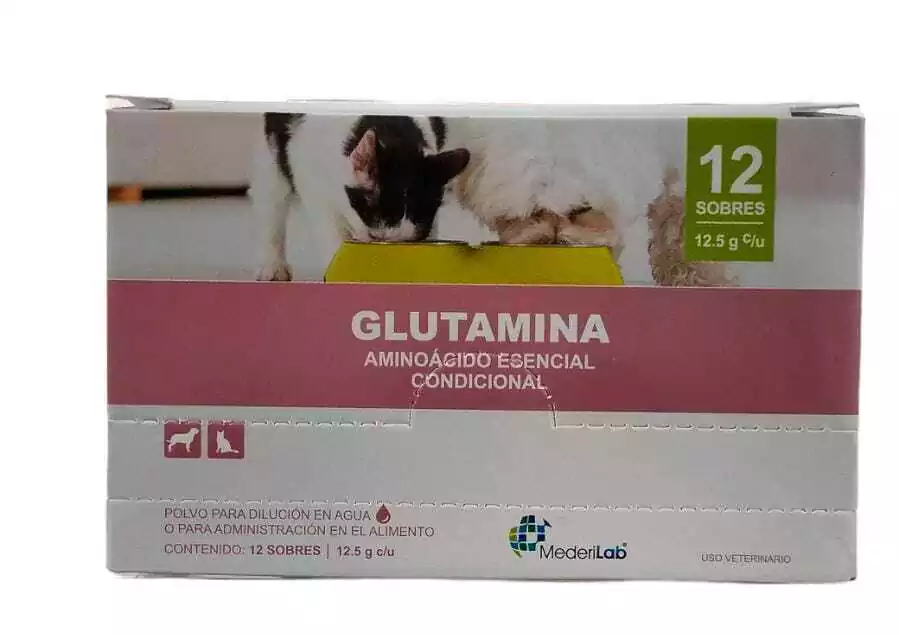 Aminoácido esencial condicional indicado como un sustrato para el intestino, donde se requiera incrementar la reparación del epitelio en condiciones donde este se encuentre dañado (por ejemplo: enteritis por parvovirus, quimioterapia). Estimula la función inmune. Disminuye significativamente bacteremias y sepsis. Recomendada para el mantenimiento y recuperación muscular.
